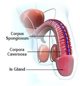 - 2 corps caverneux (Corpora Cavernosa) qui renferment des vaisseaux sanguins et qui, une fois relâchés arrivent à contenir une quantité plus importante de sang.